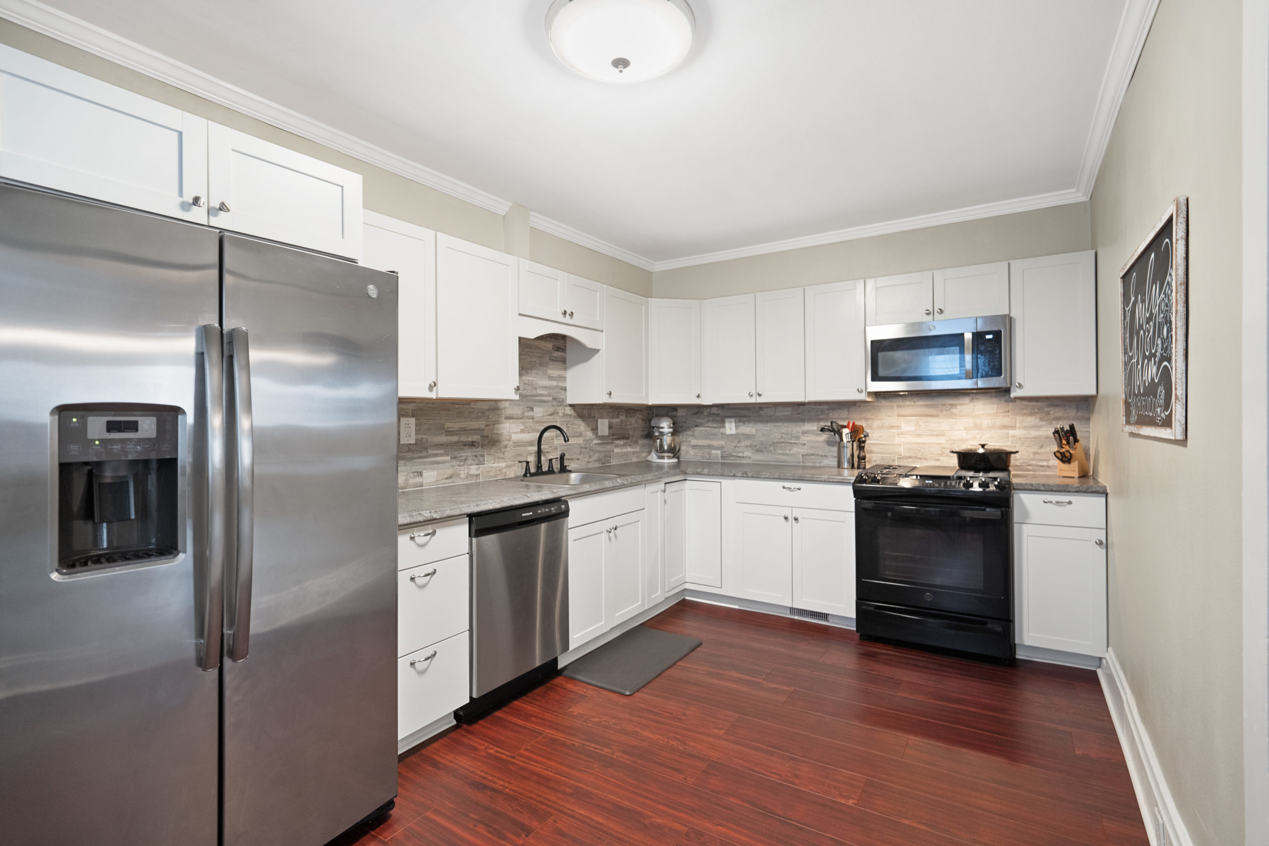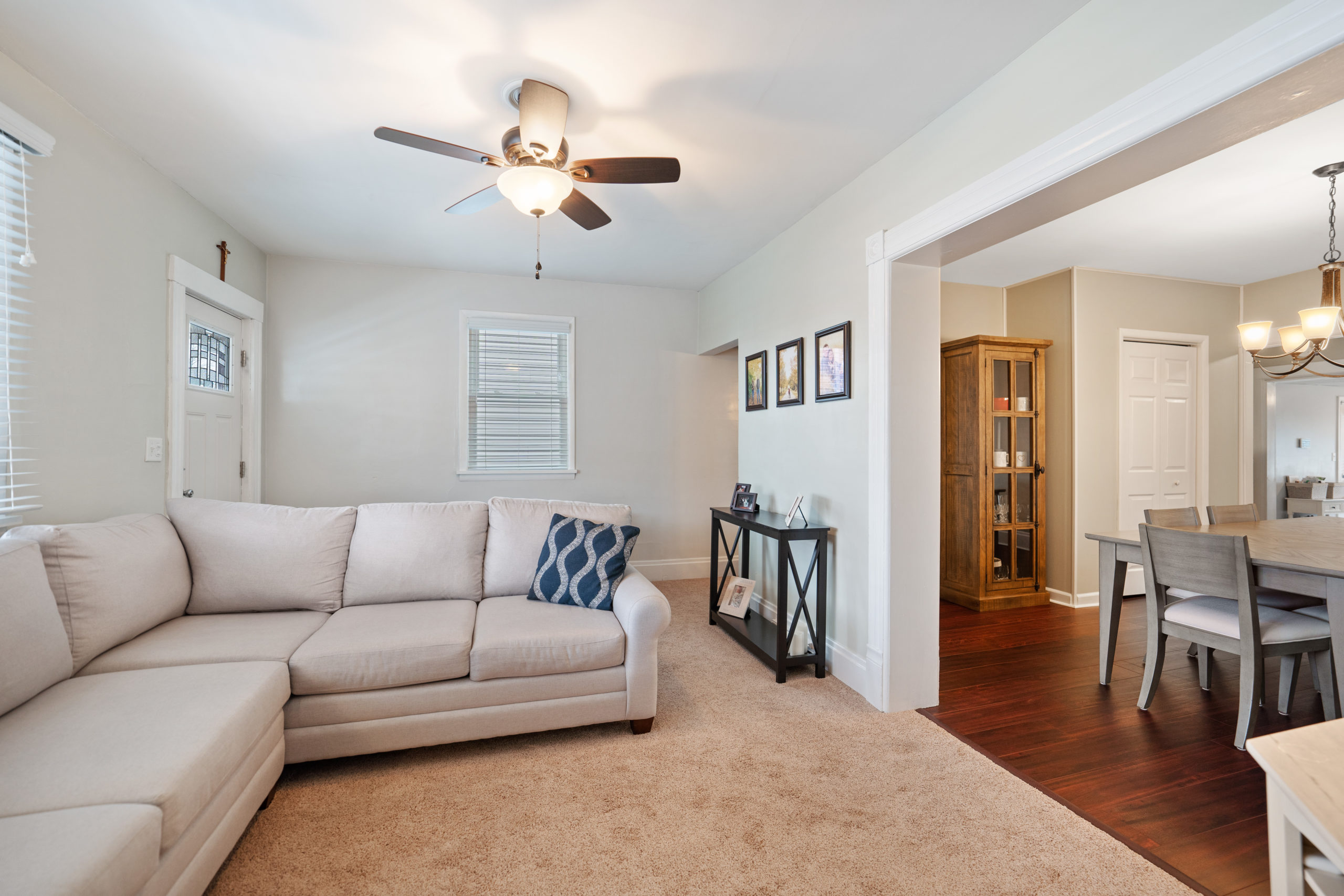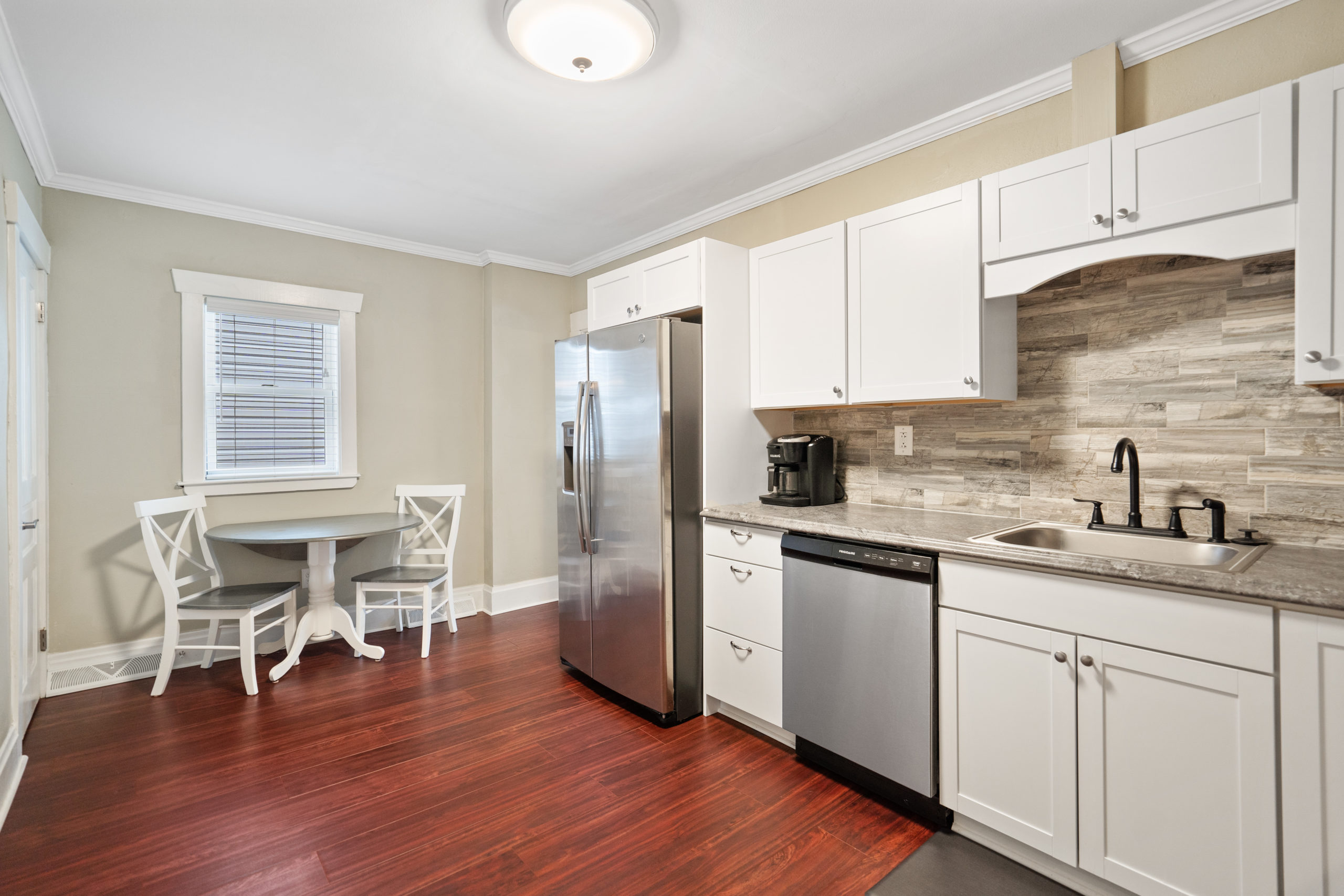 Adorable move-in ready home with 2 car garage in Southwest Greensburg! So many updates including brand new siding, gutters, flooring, H2O tank, AC, window blinds and fresh paint. Newer furnace and garage floors too! Lovely white kitchen and both bathrooms fully updated. There is a convenient main floor laundry/mudroom to make living easy. This home has 2 full baths – and one on the main floor, a rare find. Enjoy long summer days on your covered front porch with awning. Nice backyard and fully fenced !