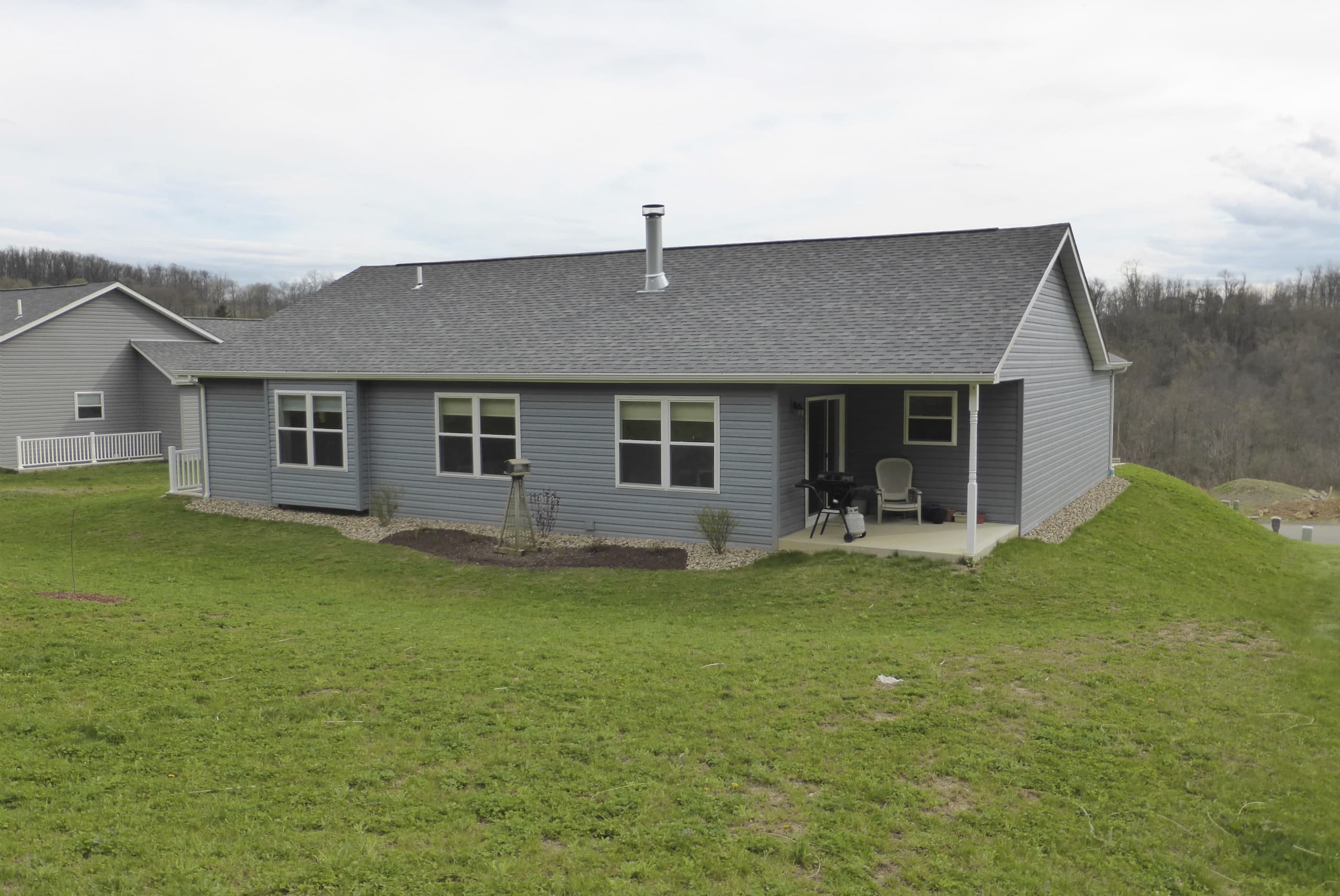Enjoy one floor living in this immaculate, nearly new custom Ranch! Upgraded walnut wood floors carry through the space. Cozy wood burning fireplace in the spacious living room with large windows looking out on to the private backyard. Large kitchen and dining area with hickory cabinets, tile flooring and access to covered patio for outdoor entertaining. 1st floor laundry for added convenience. Basement is easily finished as it is already studded out, insulated and has a bathroom rough in. Custom window treatments throughout.